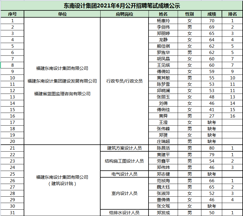 2021年6月公開招聘進(jìn)入筆試成績公示